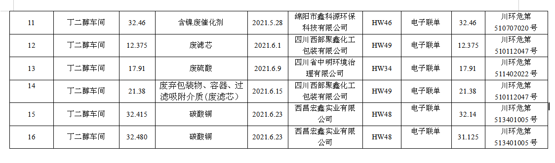 四川天華富邦化工有限責任公司危廢轉移情況公示