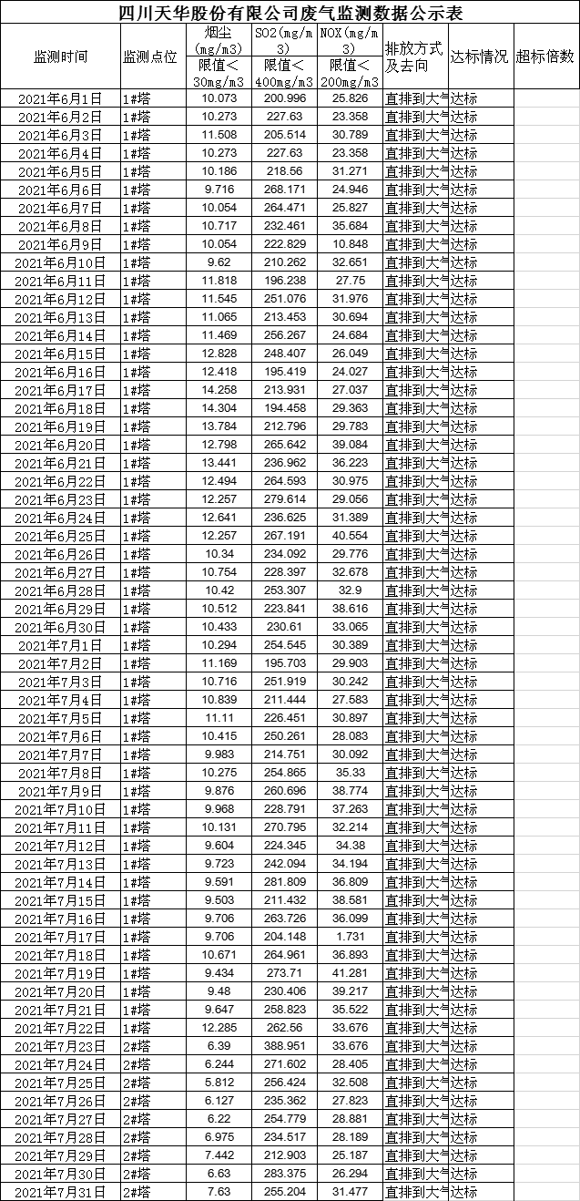 四川天華富邦化工有限責任公司6月、7月廢水監測數據公示