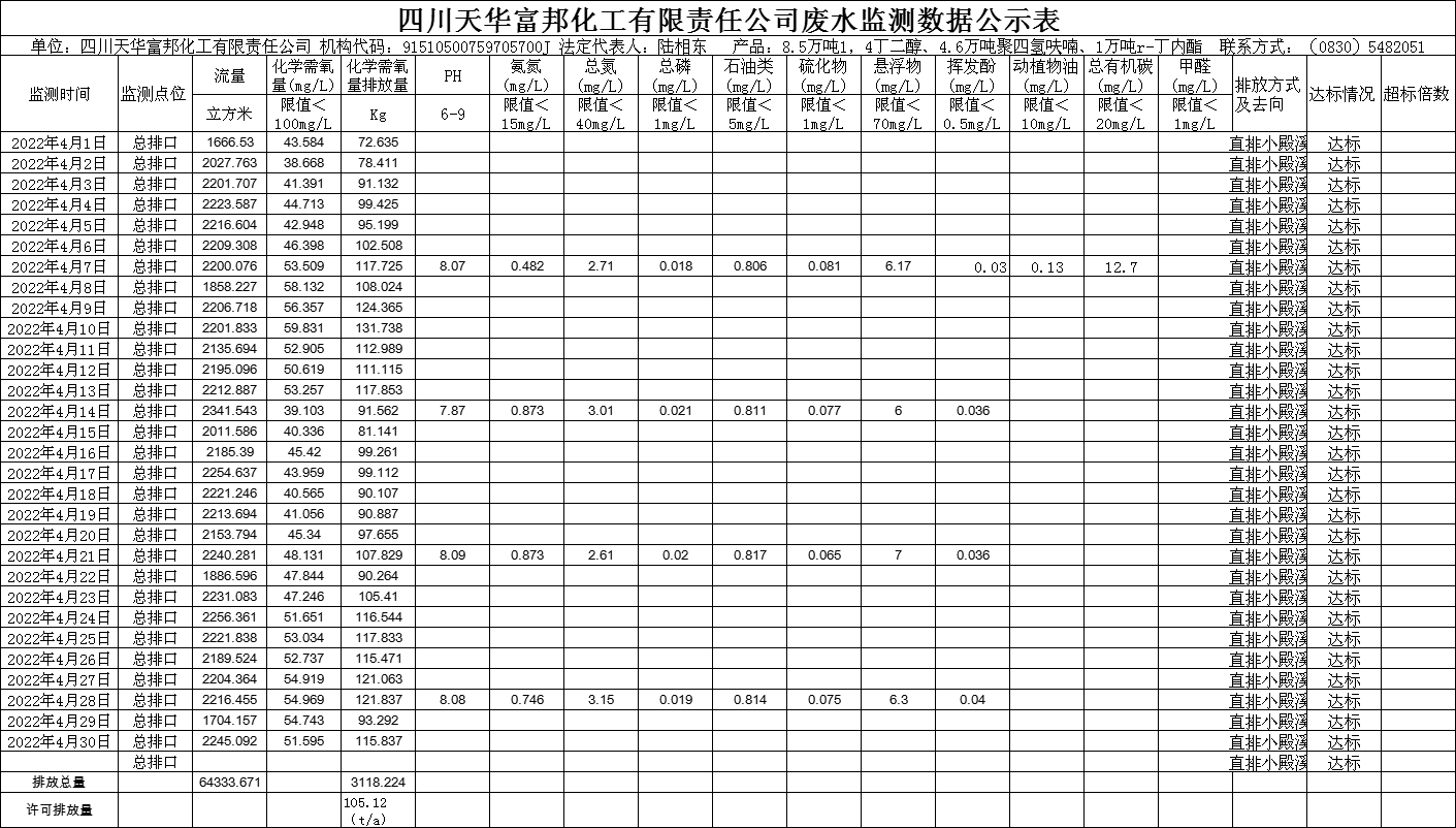 四川天華富邦化工有限責任公司2022年4月份廢水監測數據.png